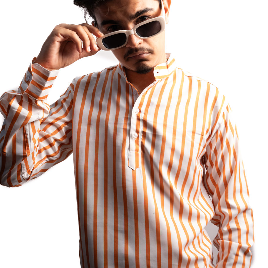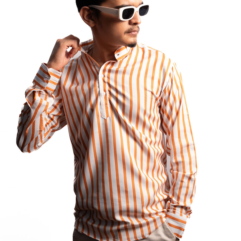 Men's Stripe Printed Full Sleeve Shirt-Mandarin Collar